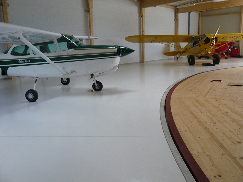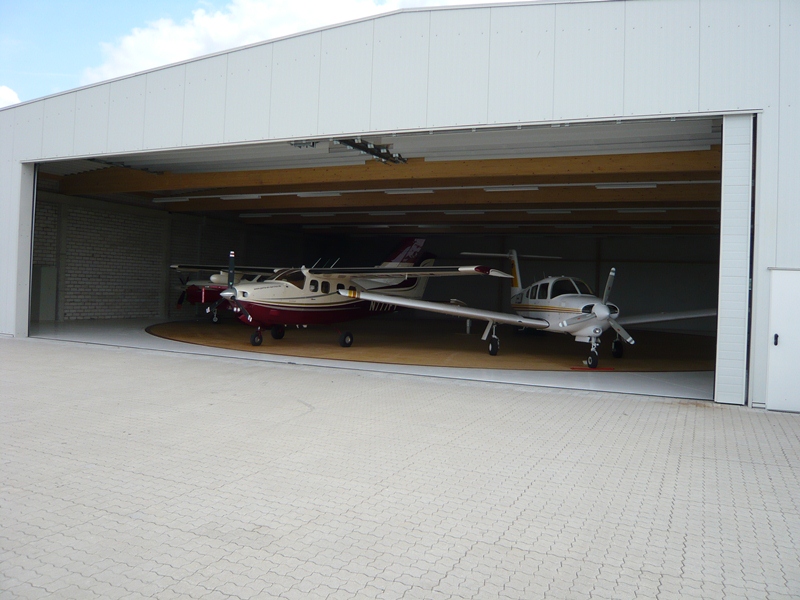 Mit hoher Einsatzbereitschaft erfüllten unsere Mitarbeiter dem Bauherrn einen großen Wunsch. Diese Luftfahrzeugunterstellhalle wurde trotz schlechter Witterungsbedingungen im Winter rechtzeitig fertig gestellt, obwohl dieser Termin vertraglich nicht fixiert war. Diese Halle steht am Flugplatz Porta Westfalica. Sie bietet einen Garagenplatz für zehn unterschiedlich große Luftfahrtzeuge, Hoch- wie Tiefdecker. Flugzeuge lassen sich mit ihren sperrigen Flügel nicht beliebig rangieren. Da sie sich nur vorwärts bewegen können, ist ein selbständiges Ein- und Ausfahren nicht möglich. Zum Unterstellen greift man zur Metallgabel, die am Bugrad befestigt wird, um das Kleinflugzeug per Hand oder per Elektromotor rückwärts in die Halle zu schieben. Die beste Auslastung der Unterstellhalle wird durch den Einbau eines Drehtellers erzielt. In diesem Fall handelt es sich um einen Durchmesser von 23 Metern. Dazu parkt der Pilot seine Maschine auf einem frei verfügbaren Stellplatz. Der Nächste verstellt den Drehteller per Knopfdruck bis sein Flugzeug heraus geschoben werden kann. Die Rohbauarbeiten für diese Unterstellhalle mussten in Porta Westfalica auf schwierigem Baugrund ausgeführt werden. Zu unseren Stärken zählten im Bereich der Betonarbeiten die Kombination effektiver Schalsysteme und die passgenaue Erstellung der Drehtellerwände aus Stahlbetonfertigteilen. Außerdem musste zum Schutz der bestehenden Nachbargebäude eine Brandwand errichtet werden. Die Übergabe dieser Halle erfolgte termingerecht. Alle funktionellen und ästhetischen Anforderungen wurden erfüllt. Der Bauherr zeigte sich mit der kompetenten Ausführung hoch zufrieden.