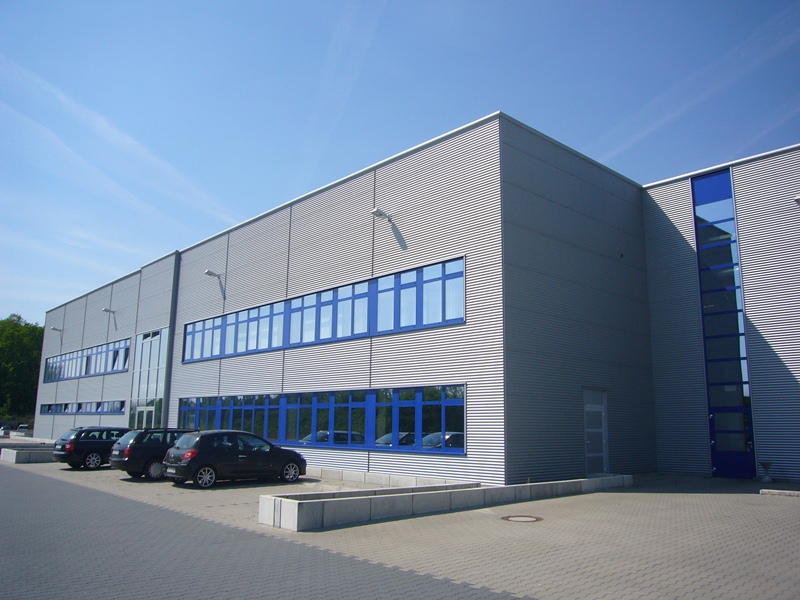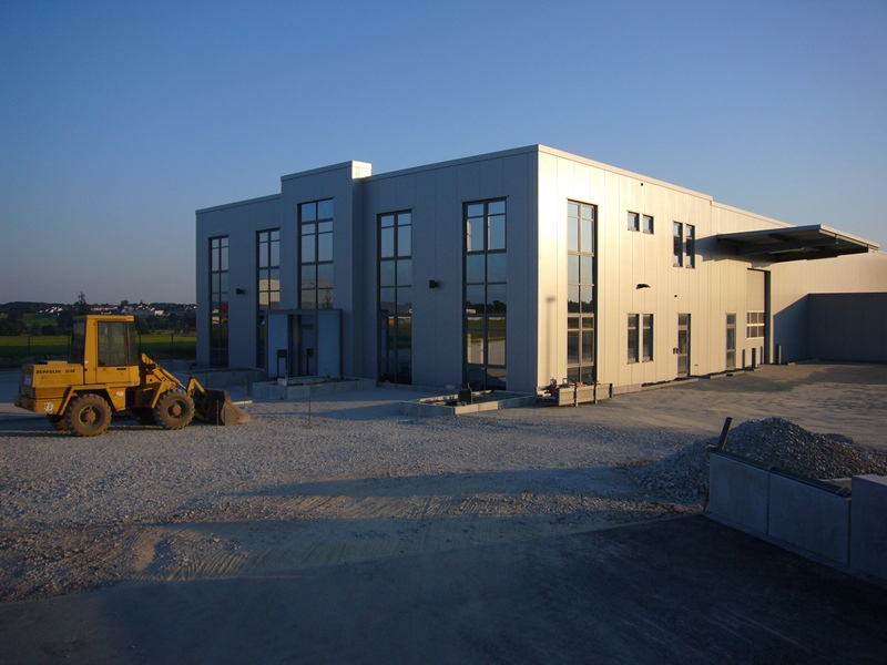 Der Bauherr beauftragte den Neubau einer Küchenmöbelfabrik in verschiedenen Bauabschnitten. So entstanden auf einer Gesamtfläche von 43.000 Quadratmetern unter anderem verschiedene Produktionsbereiche für die Korpusmontage und die Arbeitsplattenfertigung, Ausstellungsräume, eine Werkstatt, so wie Verwaltungs- und Sozialgebäude. Darüber hinaus wurden technische Gebäude und Anlagen, eine Tankstelle und eine LKW-Waschanlage errichtet. Der Auftrag lautete: die Bauabschnitte sind termingerecht zu erstellen. Zudem ist jeder Erweiterungsschritt in der Planung zu berücksichtigen. Gleichzeitig ist auf eine wirtschaftliche und nachhaltige Bauweise zu achten. In Zusammenarbeit mit der Baubehörde und der Kommune erfolgte eine Änderung des Flächennutzungsplanes. Das Landschaftsschutzgebiet wurde als Gewerbegebiet ausgewiesen. Im Gegenzug musste das Planungskonzept entsprechende Ausgleichsflächen und Renaturierungsmaßnahmen vorsehen. Darüber hinaus war eine Kanalnetzanzeige für das Gesamtgebiet, so wie ein Feuerwehrgesamtkonzept erforderlich. Die Vorgaben der Bauaufsichtsbehörde wurden in enger Absprache mit dem Bauherren in die Planung integriert und umgesetzt. Die hochwertige Rohbaukonstruktion wurde fristgerecht in enger Vernetzung mit anderen Gewerken erstellt. Für verschiedene Maschinenstraßen wurden passgenaue Maschinengruben, unter anderem mit diversen Höhenversätzen, eingerichtet. Die Dachkonstruktion, die aus Stahlbindern, Stahlpfetten und Blechen besteht, ruht auf Stahlbetonstützen und bildet mit diesen ein bewährtes Tragwerk. Die Außenfassade wurde mit Aluminium-Sinuswellen verkleidet. Der Kontrast, der durch die farbigen Fensterelemente erzielt wird, sorgt für ein ästhetisches Erscheinungsbild der Küchenmöbelfabrik.